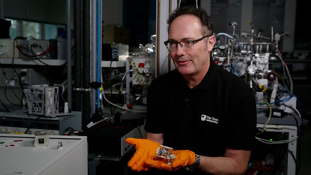 Presenter, Maggie Aderin, talks to Simeon Barber, an engineer at the Open University, about how scientific instruments that travel on space craft must be miniaturised.