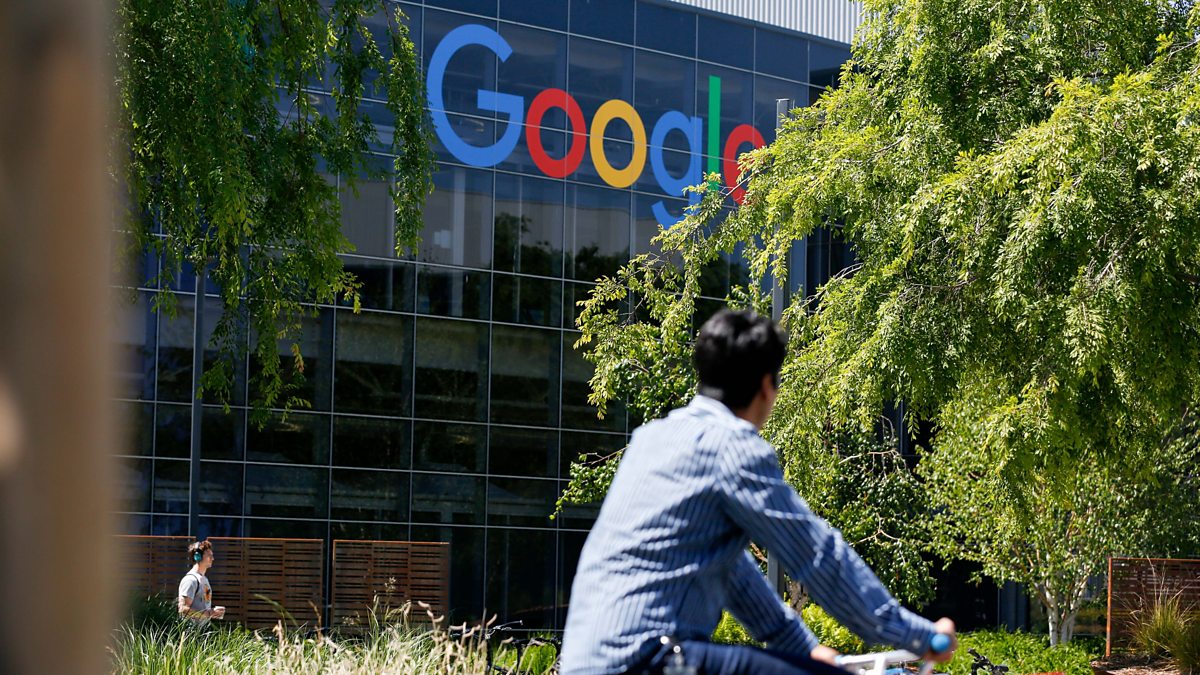 (Picture: A person cycles past a Google building. Picture credit: Getty Images.)