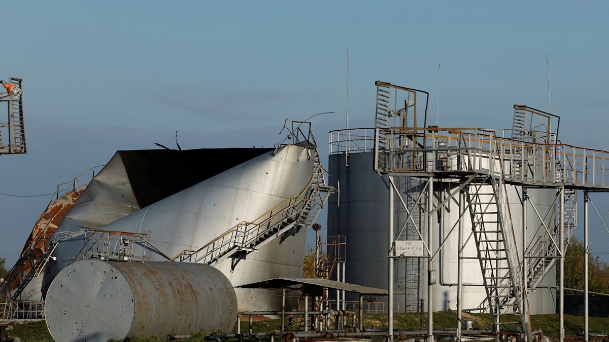 (Photo: Damaged Ukrainian fuel tanks in Kupiansk, Ukraine. Credit: Reuters)