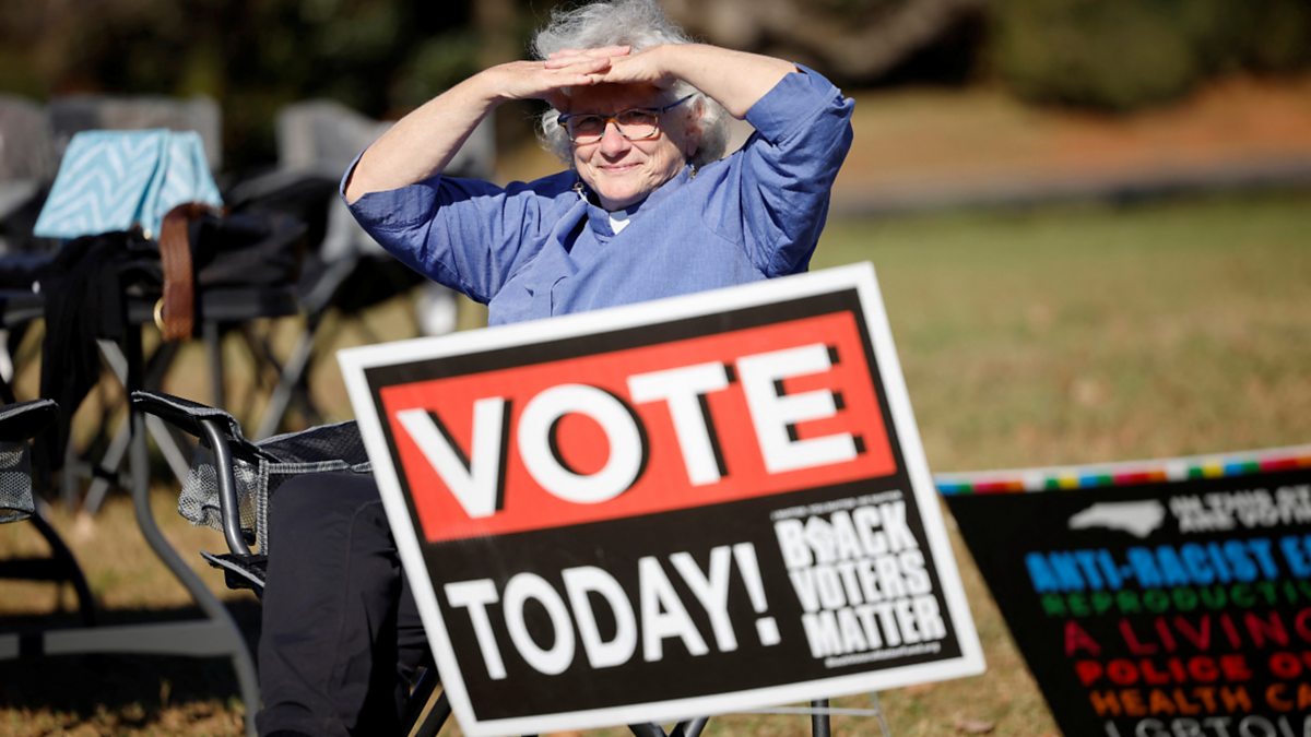 (Photo: A volunteer keeps watch outside a polling station during the 2022 midterm elections in Efland, North Carolina, US, 8 November, 2022. Credit: Jonathan Drake/Reuters)