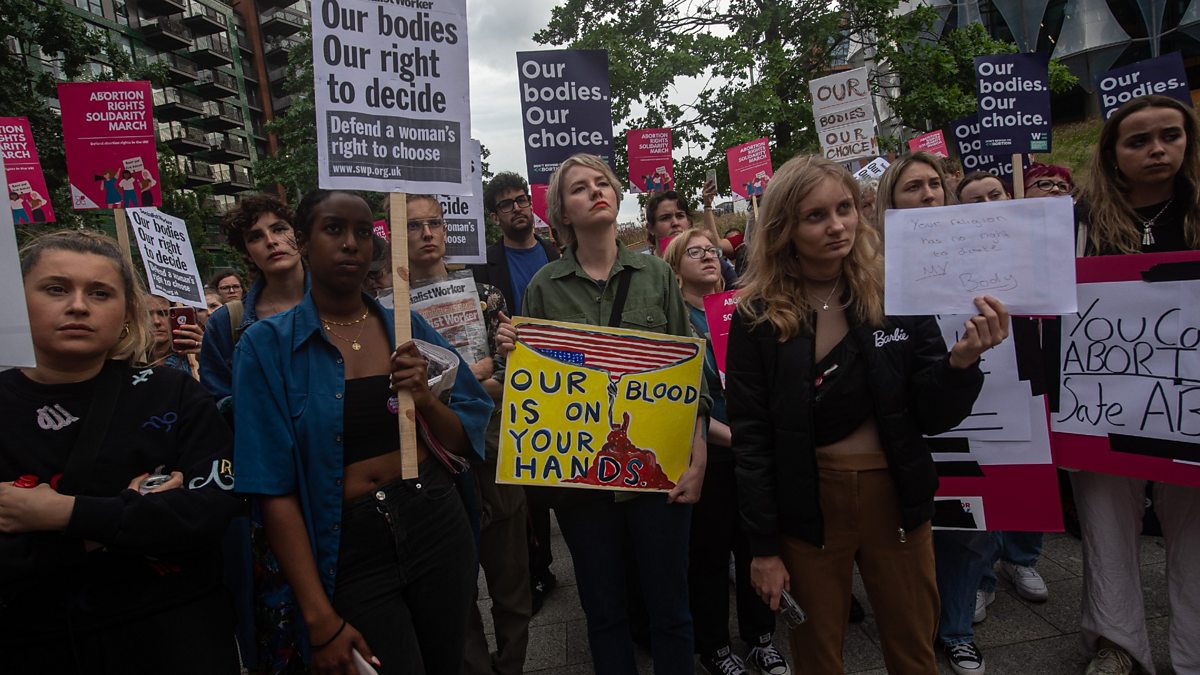 The US Supreme Court has reversed its constitutional stance on abortion after 50 years. More than 30 million US women are set to lose their automatic right to end their pregnancy. What will it mean for the US economy? Critics say it could result in worsening inequalities and push some women into poverty. Meanwhile, a number of workplaces have pledged to help women access healthcare in states where abortion will remain legal. (Picture: Women gather to protest against the Supreme Court's decision; Credit: Guy Smallman/Getty Images).