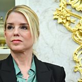 (Photo: Former US Attorney General Pam Bondi attends a swearing-in ceremony in the Oval Office of the White House in Washington, DC, USA, 24 March 2026. CREDIT: GRAEME SLOAN/POOL/EPA/Shutterstock)
