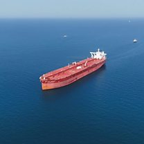 (Photo: A drone view of a tanker arriving in Iraq's territorial waters after sailing through the Strait of Hormuz. Credit: Mohammed Aty / Reuters)