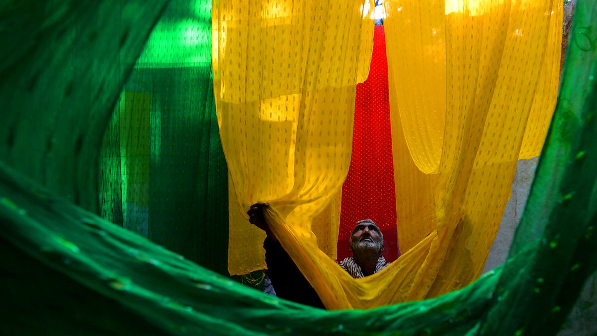 (Photo: a Pakistani labourer hangs wedding fabrics to dry after the dyeing process in Lahore. Credit: Getty Images)