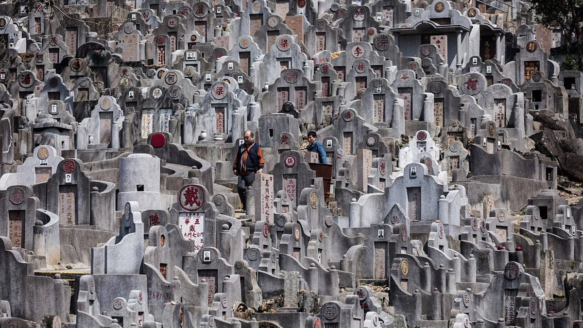 (image: A crowded cemetery in Hong Kong. Photo credit: Dale De La Rey/Getty Images.)
