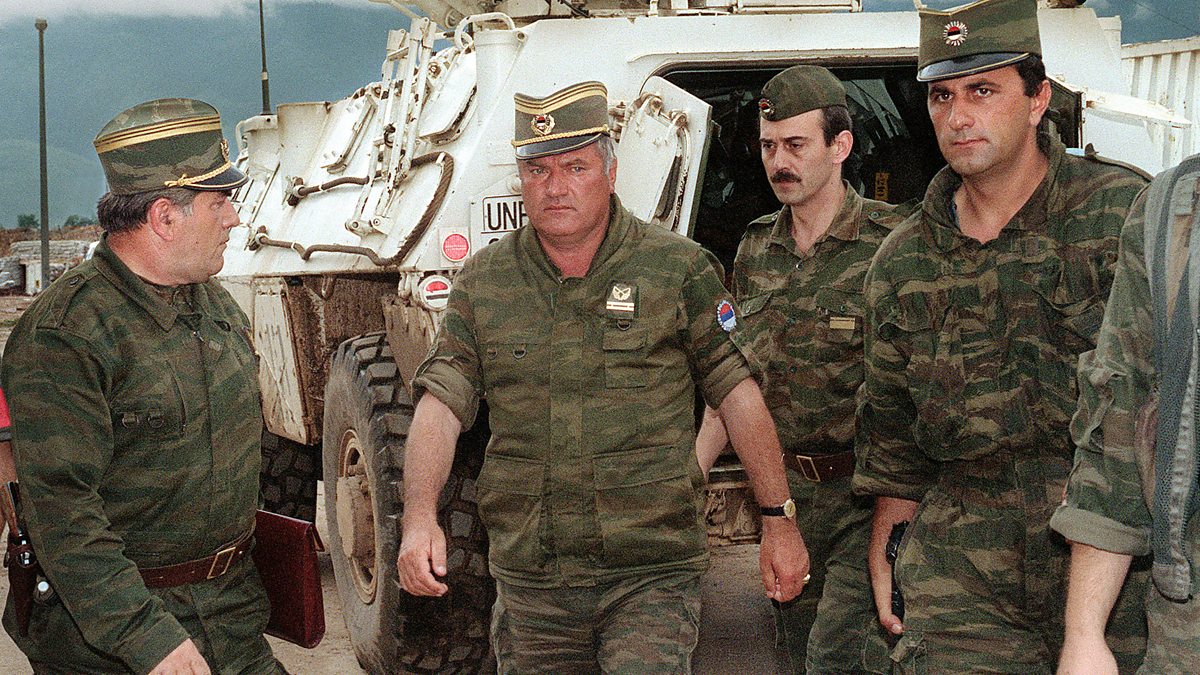 (Photo: Commander of Serbian forces in Bosnia General Ratko Mladic arrives at the airport of Sarajevo on August 10, 1993. Credit: Getty Images)