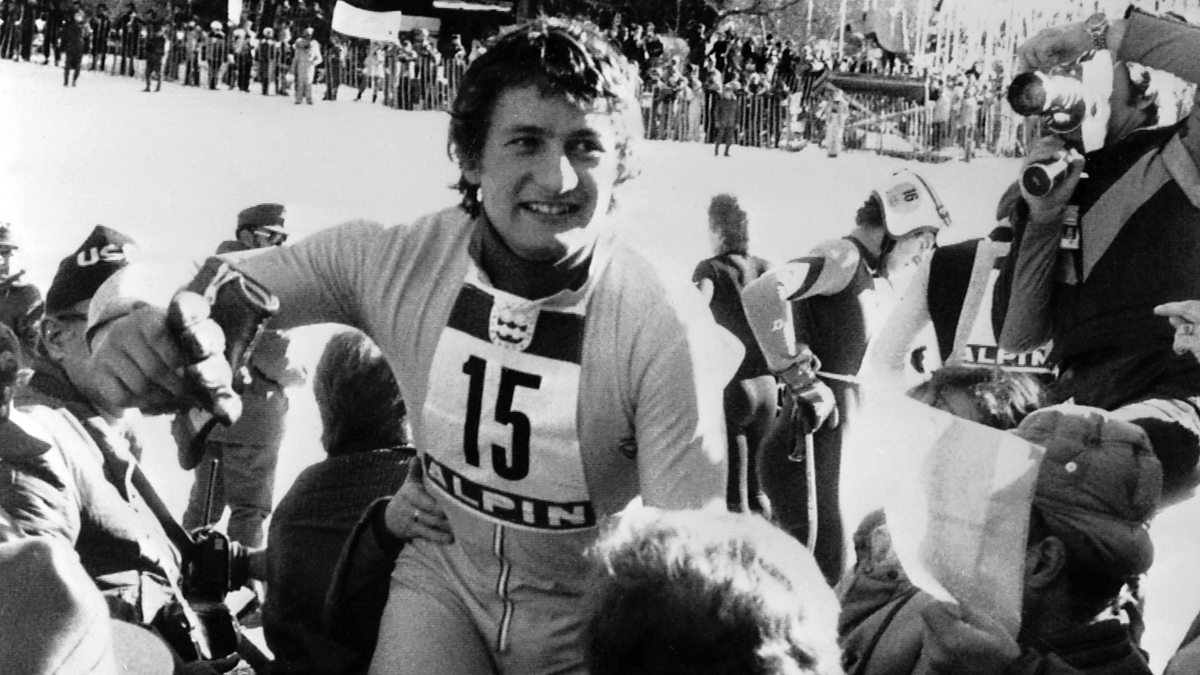 PICTURE: Franz Klammer celebrating with the Austrian crowd in Innsbruck (Getty Images)