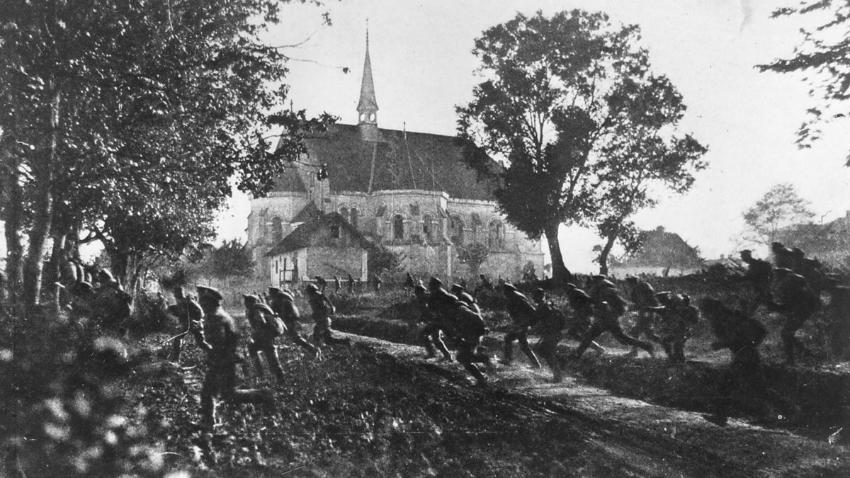 Photo: Russian soldiers flee through a village after a provocateur announced that the German cavalry had broken through circa 1916. (Photo by Hulton Archive/Getty Images)
