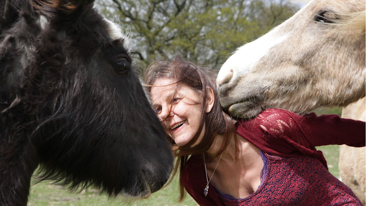 (Photo: Sophie Sabbage snuggles up to two horses)