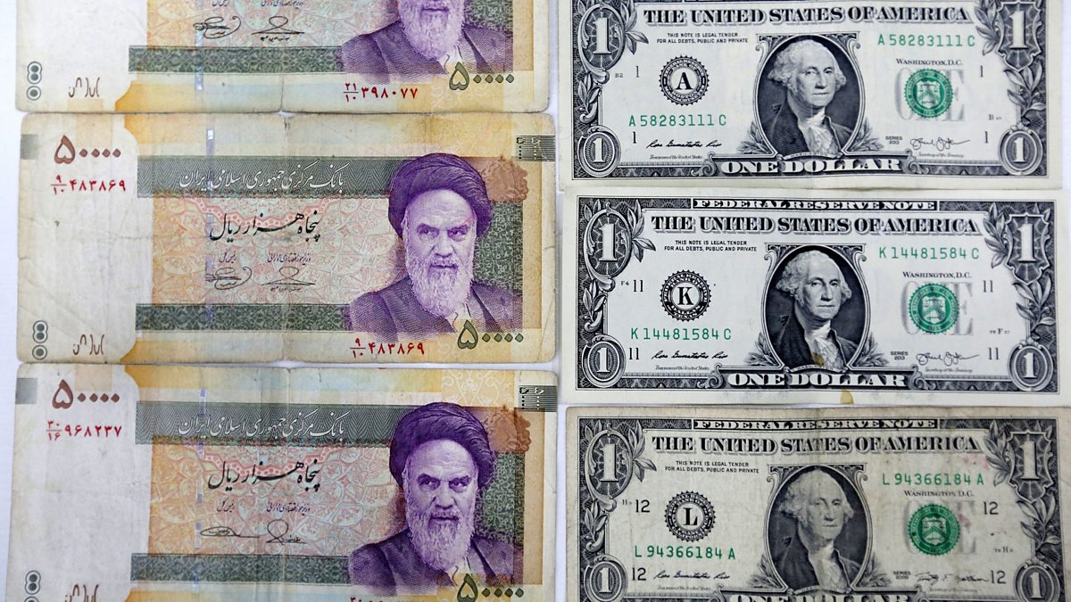 (Picture: Iranian rial banknotes, alongside US one dollar bills; Credit: Atta Kenare/AFP/Getty Images)