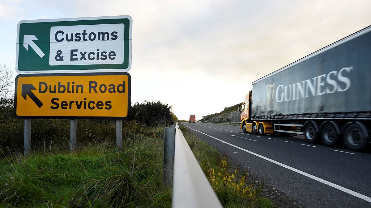 (Picture: A Guinness truck passes a sign for Customs and Excise on a road near the border with Ireland near Kileen, Northern Ireland. Credit: Reuters)
