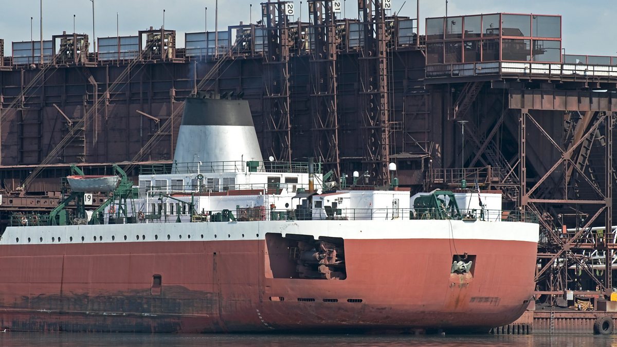 (Picture: Ship being loaded with iron ore at dock in Minnesota; Credit: PhilAugustavo/Getty Images)