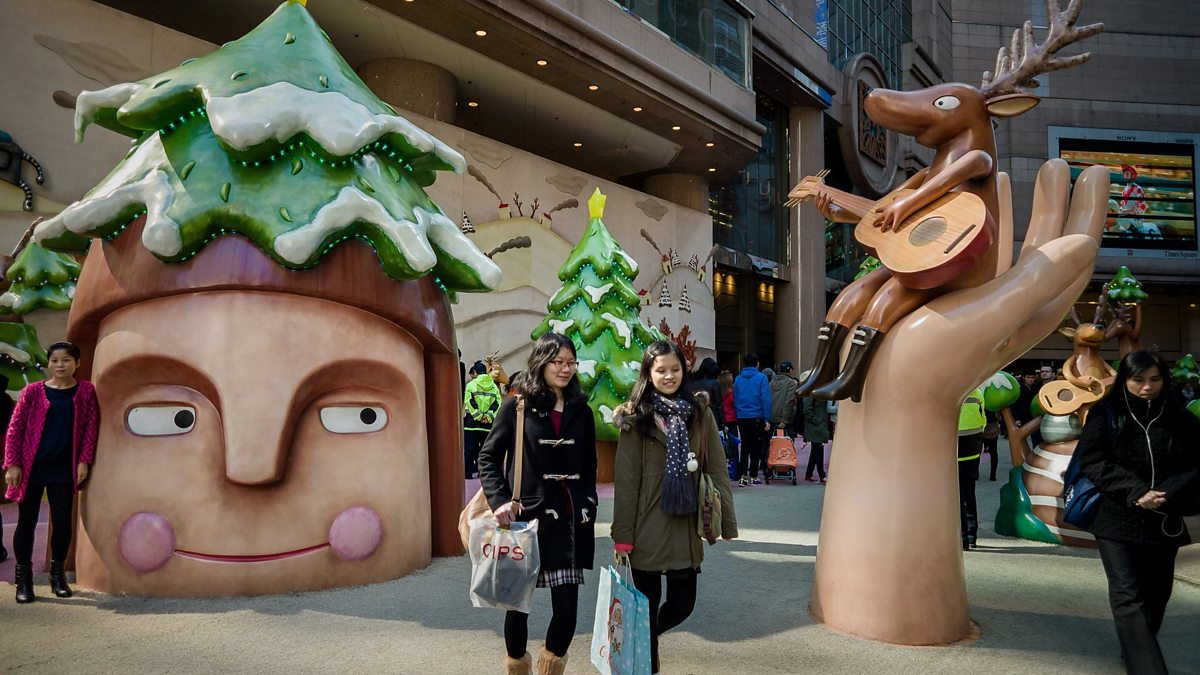 (Picture: Christmas decorations outside a shopping mall in Hong Kong; Credit: Philippe Lopez/AFP/Getty Images)