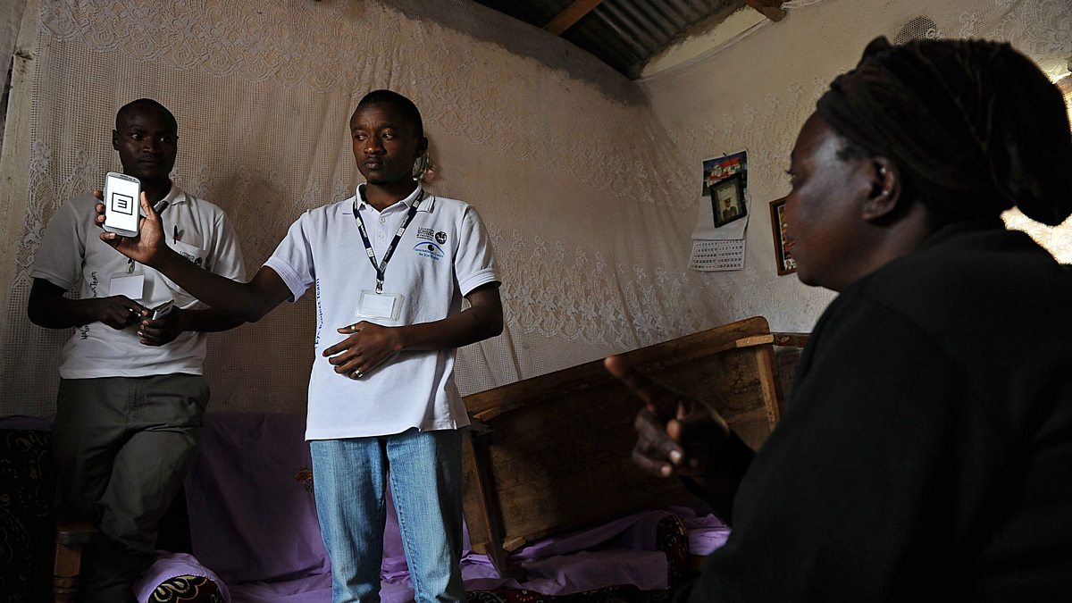 (Picture: A woman being tested with a smartphone visual-test application in her home in Kianjokoma village, near Kenya's lakeside town of Naivasha. Credit: AFP/Getty.)