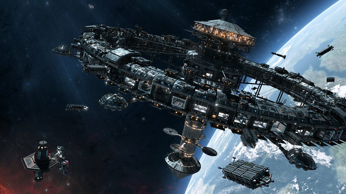(Picture: Fictional space station with astronauts and space ships; Credit: ZargonDesign/Getty Images)