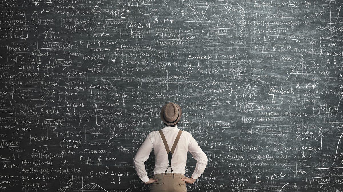 (Image: A man stares at a confusing illustration of graphs on a blackboard. Credit: francescoch/ Getty Creative)