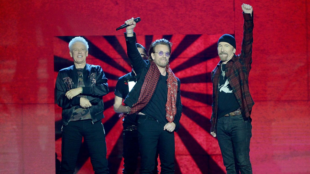(Photo: Irish rock band U2 at the MTV Europe Music Awards in November 2017 Credit: Dave J Hogan/Getty Images)