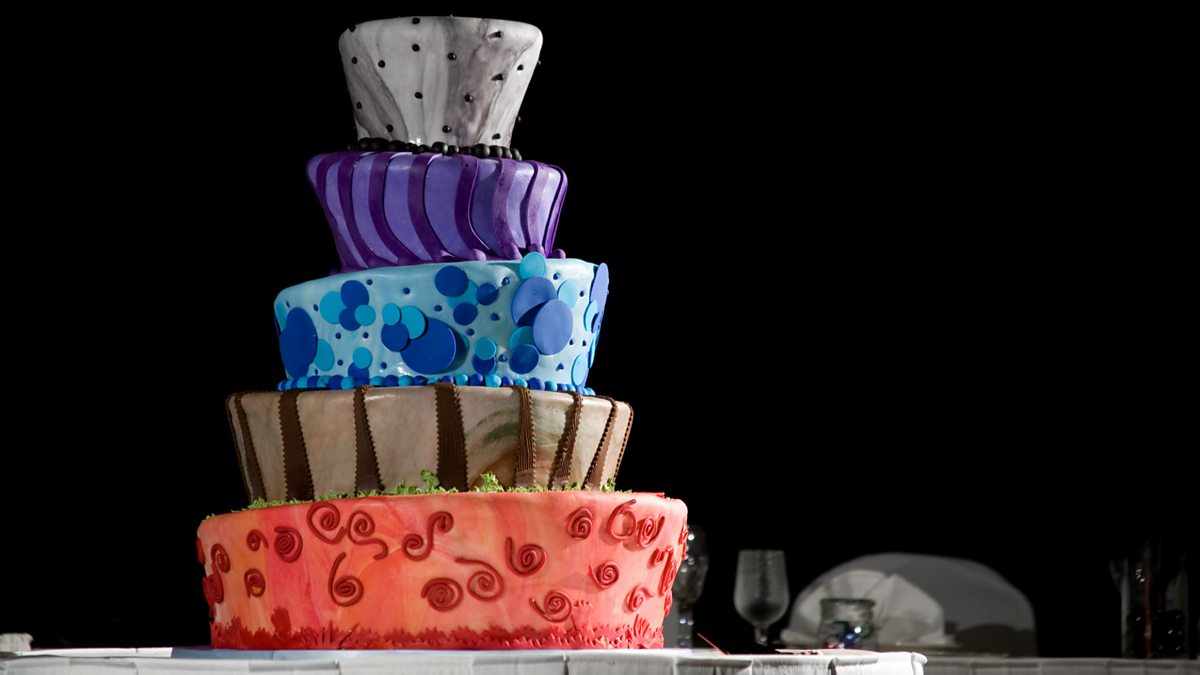 (Picture: Quirky and colourful tiered cake Credit: Getty Images)