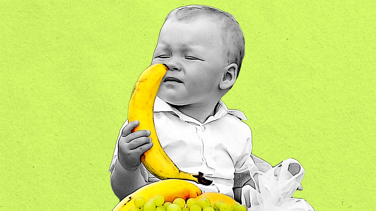 (Photo: Infant smelling banana. Credit: Getty Images/ BBC)