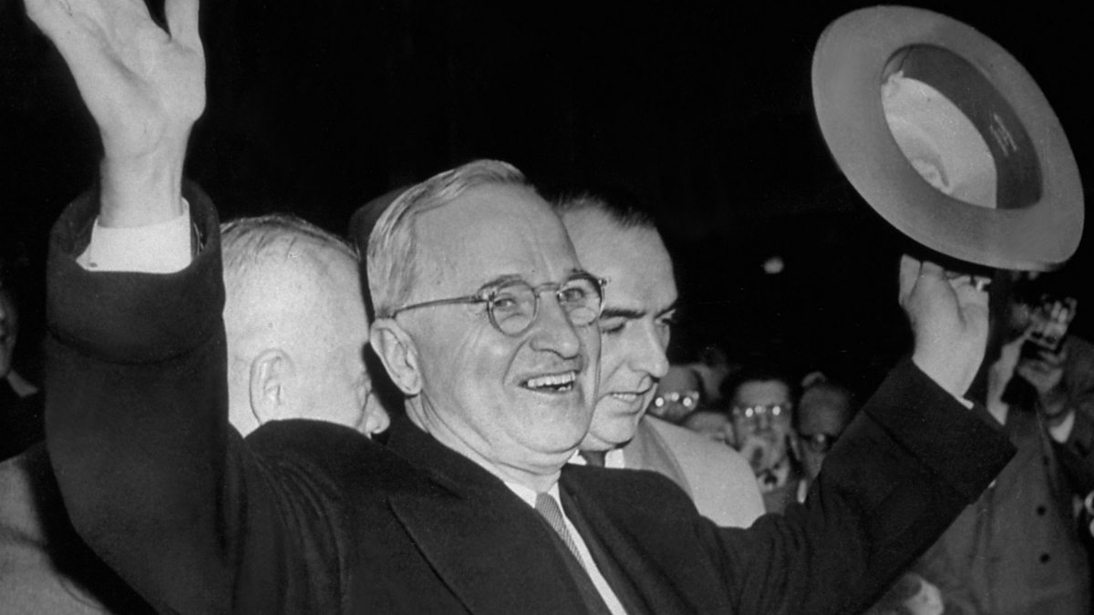 Picture: American President Harry S Truman smiles and waves to the excited Kansas City crowd after hearing the news that he had won the United States elections in 1948 and retained the Presidency, despite of what many polls had predicted, Credit: Keystone, Getty Images.