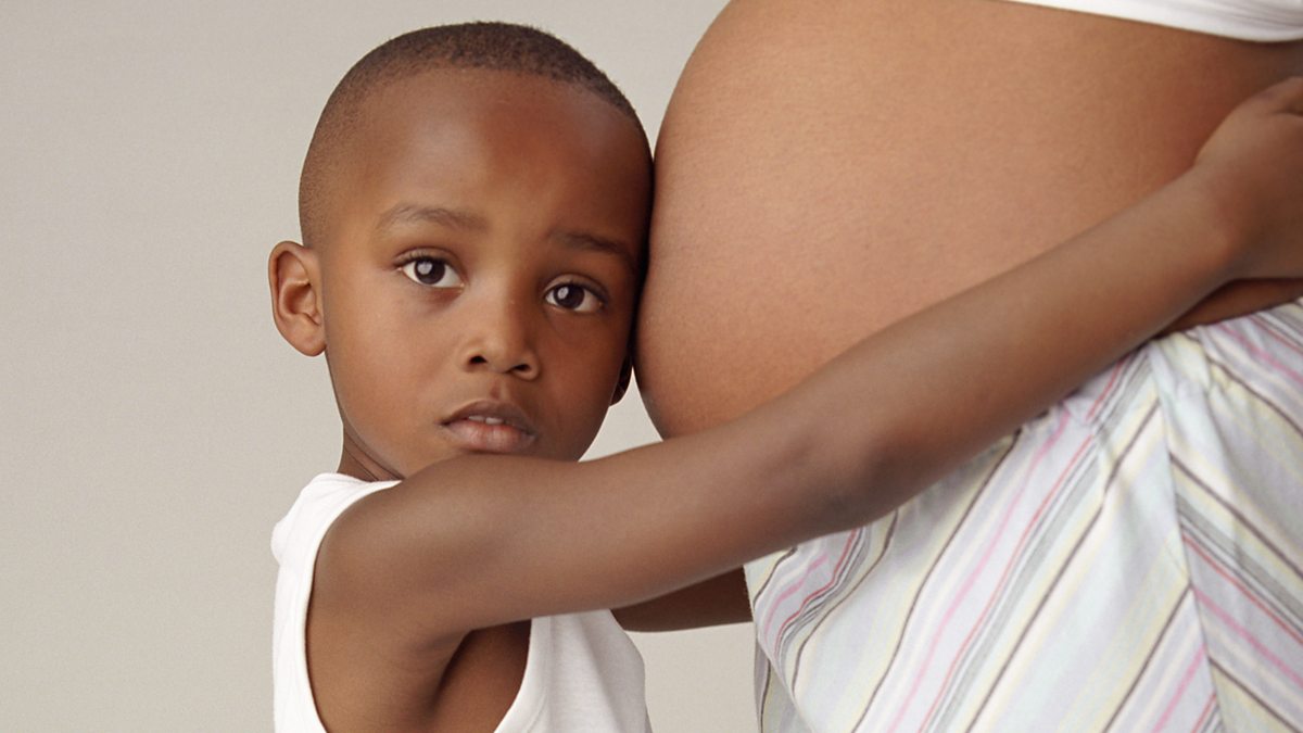 Image: Young son hugging his pregnant mother. Credit: Science Photo Library