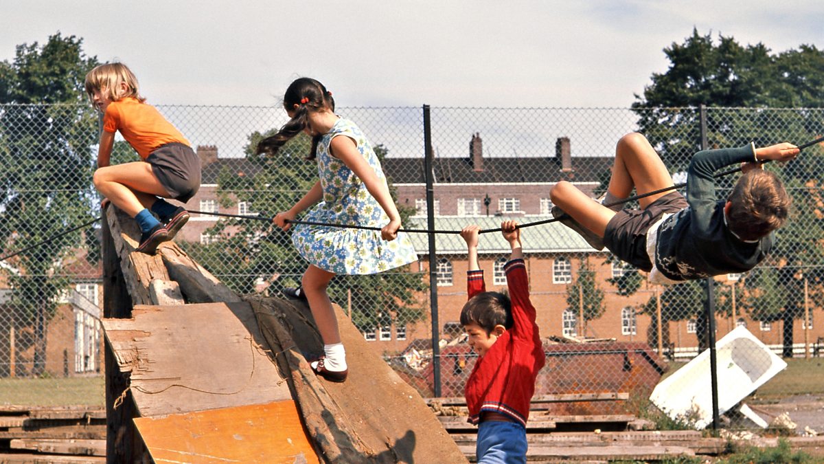 Picture: children playing on an adventure playground in London in the 1970s (Credit: BBC)
