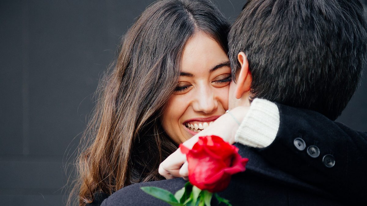 (Image: A loving couple hugging each other, the woman holding a rose. Credit: Getty Images)