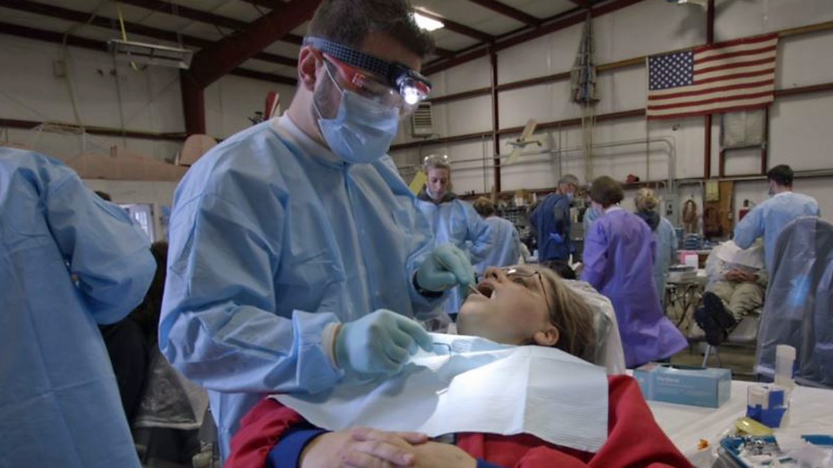 Photo: Dental work being administered at a temporary dental hospital in Virginia, US Credit: BBC