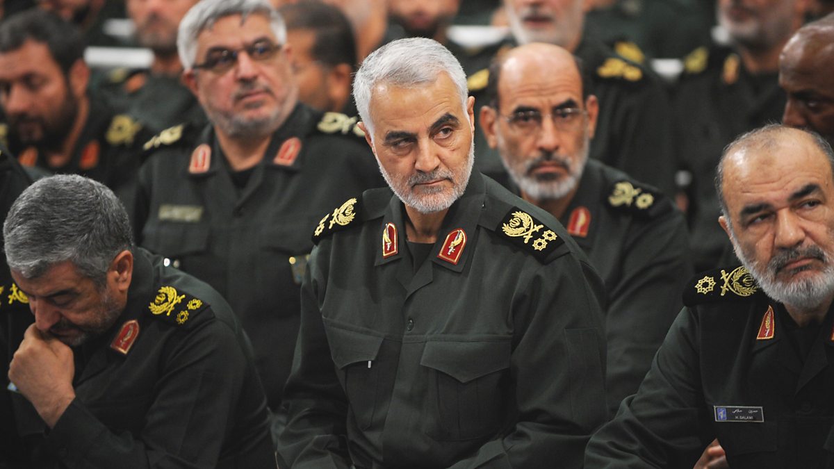 (Iranian Quds Force commander Qasem Soleimani (C) attends Iranian supreme leader Ayatollah Ali Khamenei's meeting with the Islamic Revolution Guards Corps (IRGC) in Tehran. Credit: Anadolu Agency/Getty Images)