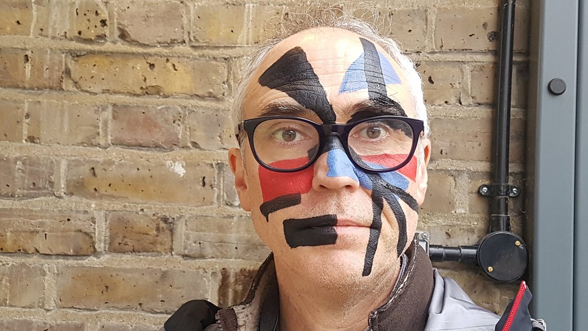 (Picture: Ed Butler's face covered in anti-surveillance paint; Credit: Ed Butler)