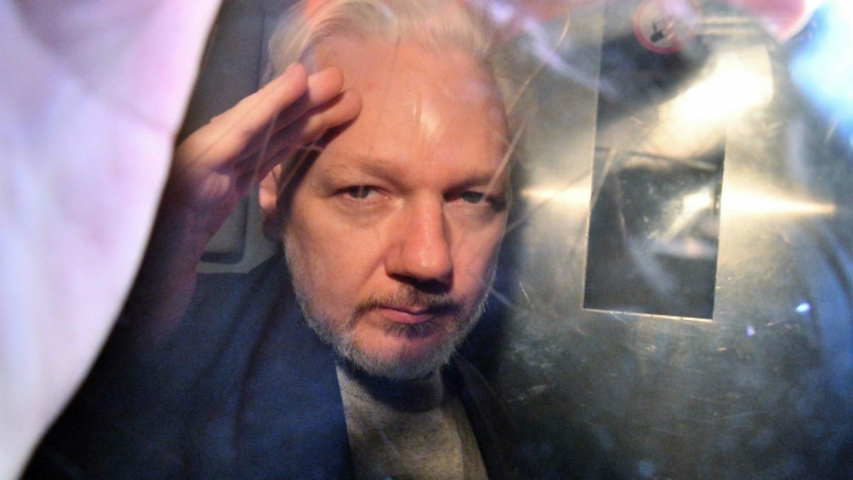 (Photo: WikiLeaks founder Julian Assange gestures from the window of a prison van as he is driven out of Southwark Crown Court, London, 1 May 2019. Credit: Daniel Leal-Olivas/AFP/Getty Images)