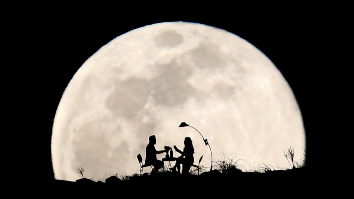 Photo: A couple have dinner on a hill as the Supermoon is seen in Turkey's Kayseri, 2019. (Sercan Kucuksahin/Anadolu Agency/Getty Images)