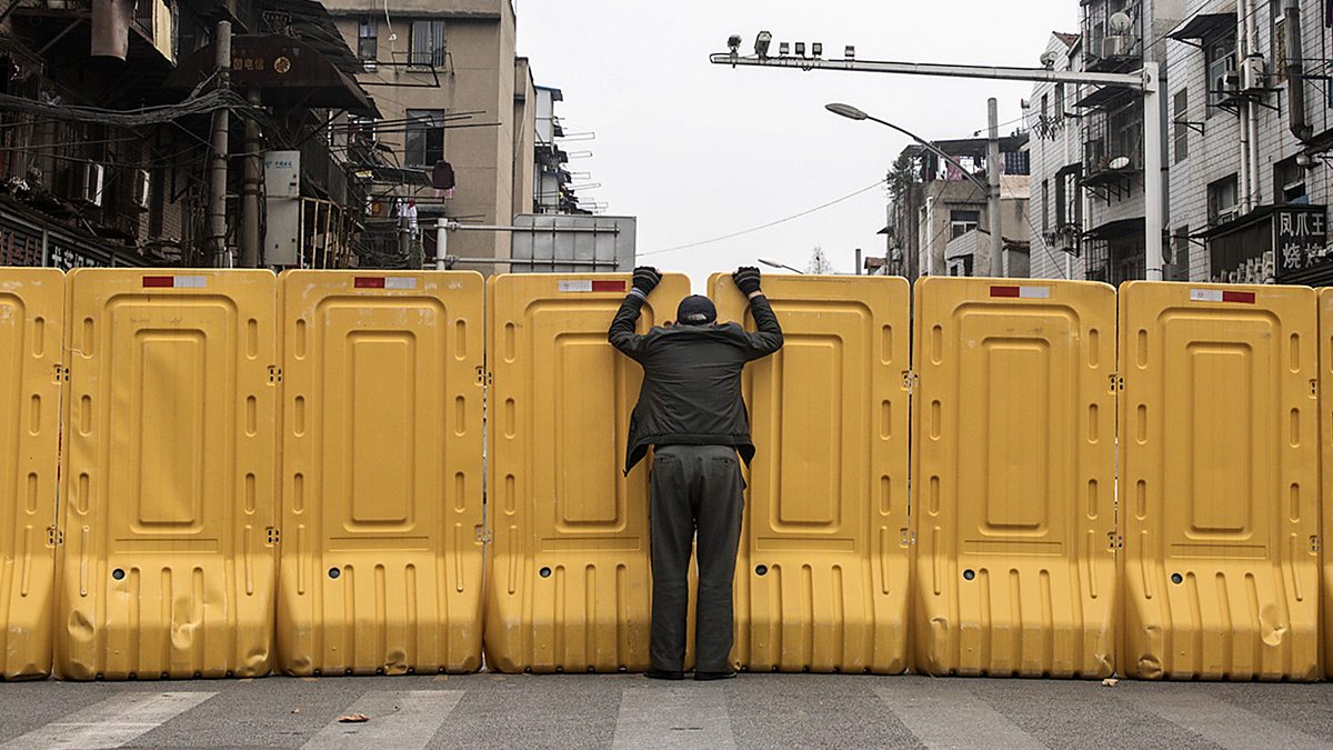 (Photo: A man talks through a barricade wall built to control entry and exit to a residential compound in Wuhan, Hubei province, China.Credit: Getty Images)
