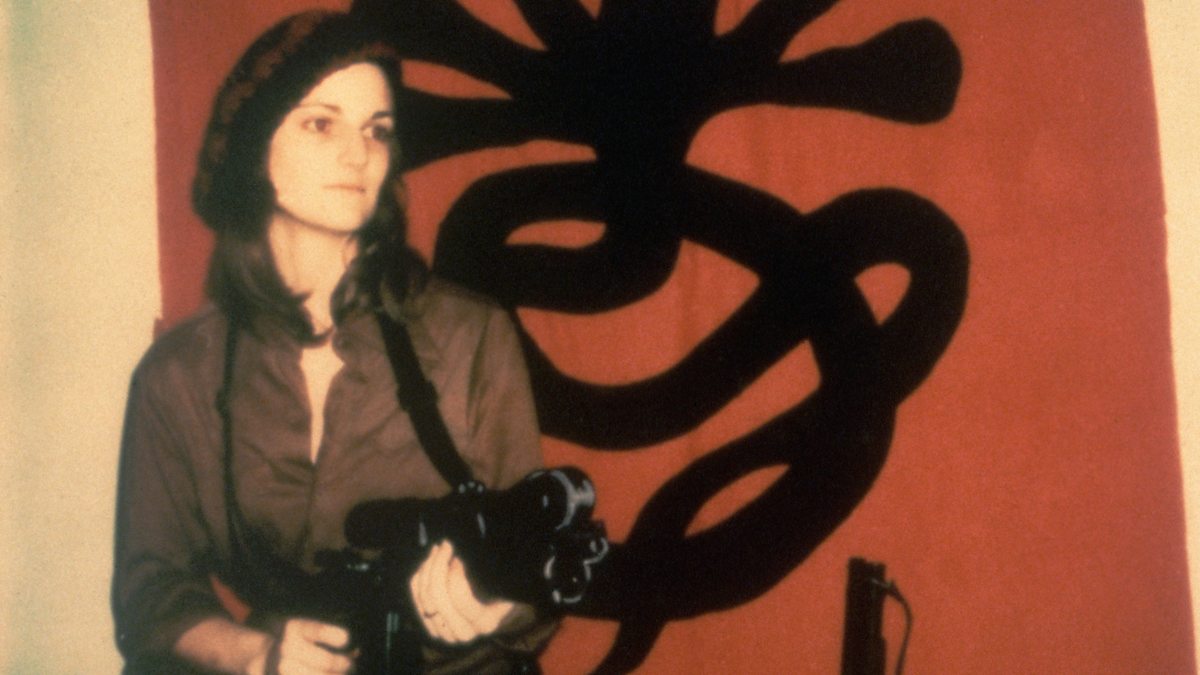 Photo: Patty Hearst posing with a machine gun in front of a Symbionese Liberation Army flag in 1974. (Credit: Getty Images.)