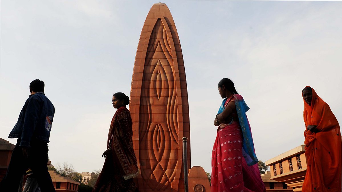 Photo: Indian visitors walk past the Flame of Liberty memorial at Jallianwala Bagh in Amritsar. Credit:Narinder Nanu/AFP/Getty Images.