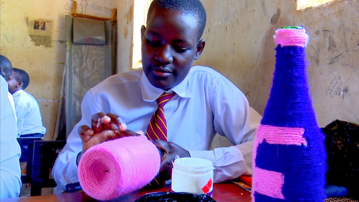 Uganda has a very young population – the median age is 16 and young people find it hard to get a job. So now children are being taught how to run their own businesses before they leave school. They learn about profit and loss, how to get investment, leadership and practical skills, such as making bags and charcoal briquettes for the communities where they live.