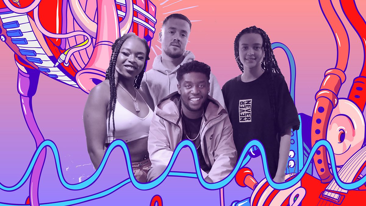 Photo L-R: Connie Constance, Maverick Sabre, Femi Koleoso and Nadia Rose Credit: BBC