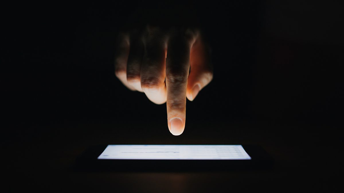(Image: Checking a smartphone, lit-up against a dark background. Credit:d3sign/Getty)