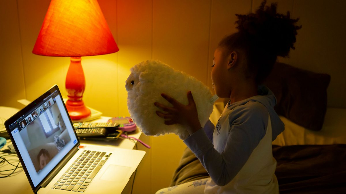Joy Malone's daughter speaks to her kindergarten classmates on a Zoom call for the first time since schools were closed due to the coronavirus disease (COVID-19) outbreak in New Rochelle, New York - by Reuters / Joy Malone
