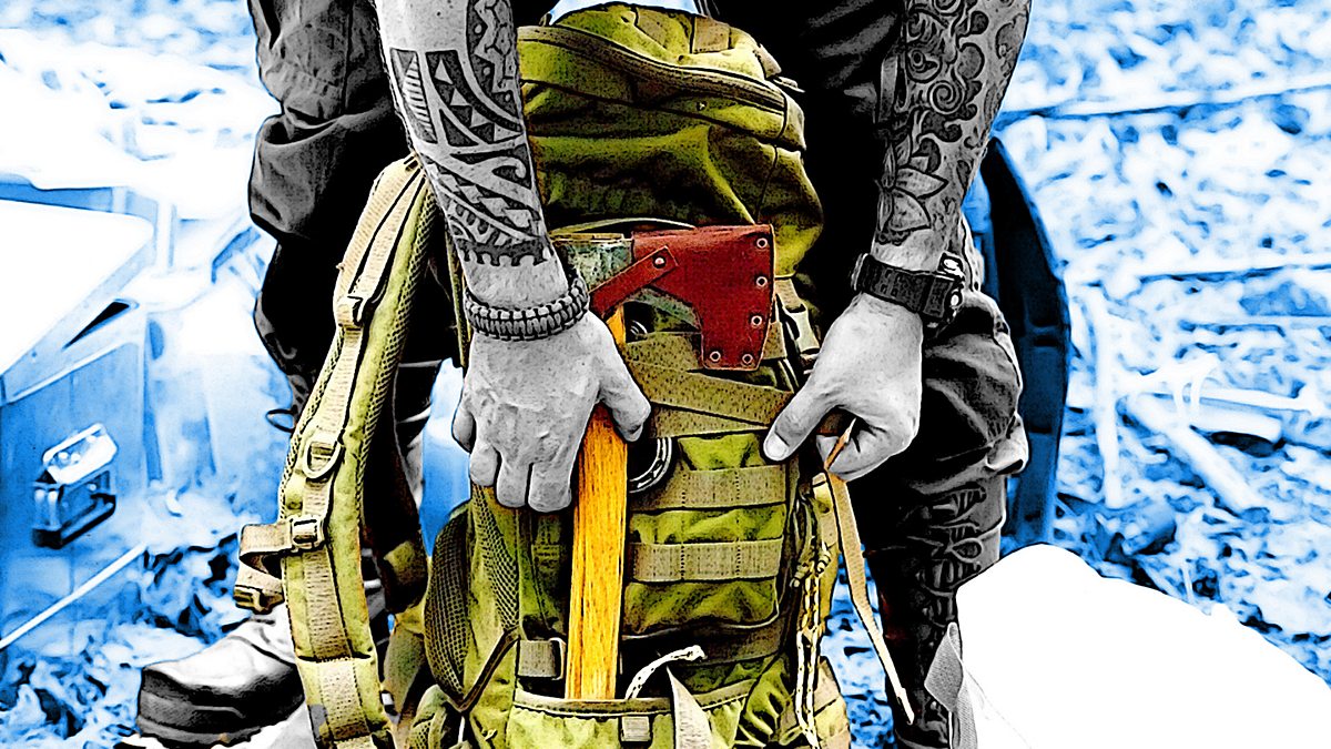 (Picture: A man with a backpack and axe in the forest. Credit: Getty Images/BBC)