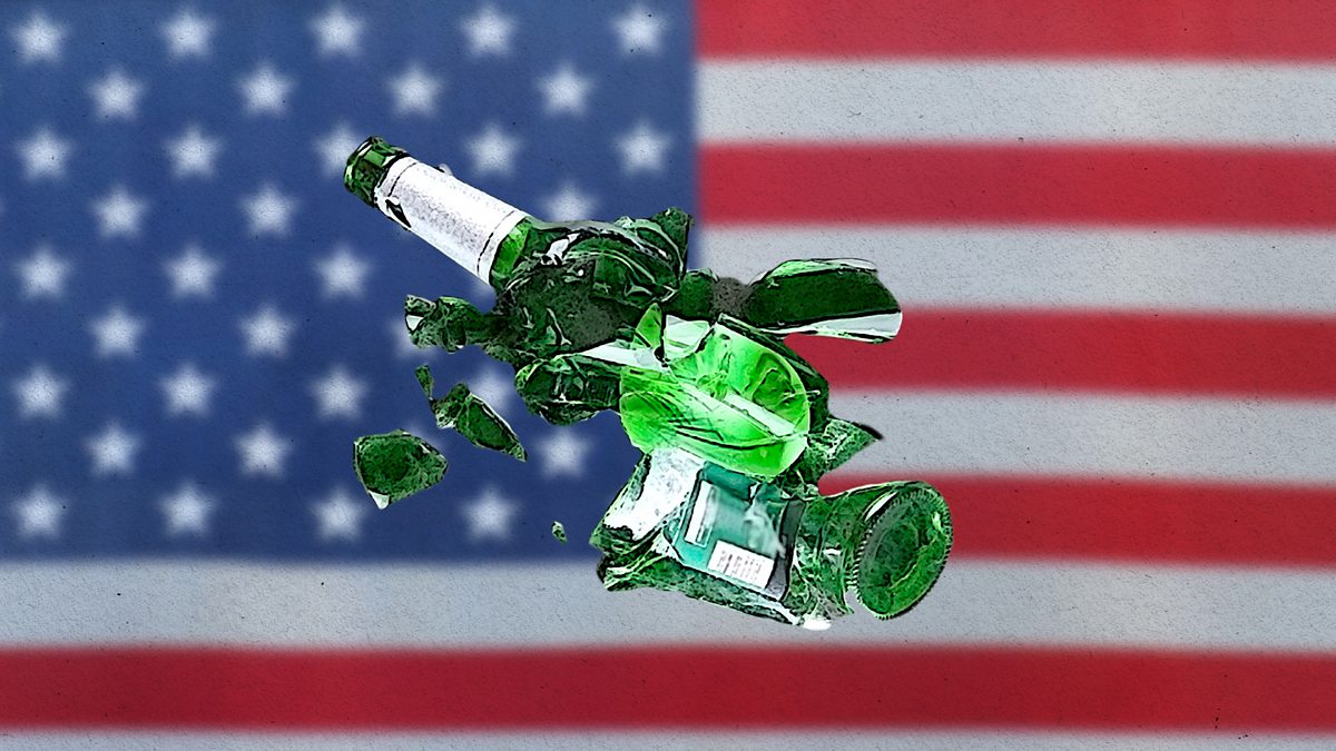 (Picture: A broken beer bottle on a US flag. Credit: Getty Images/BBC)