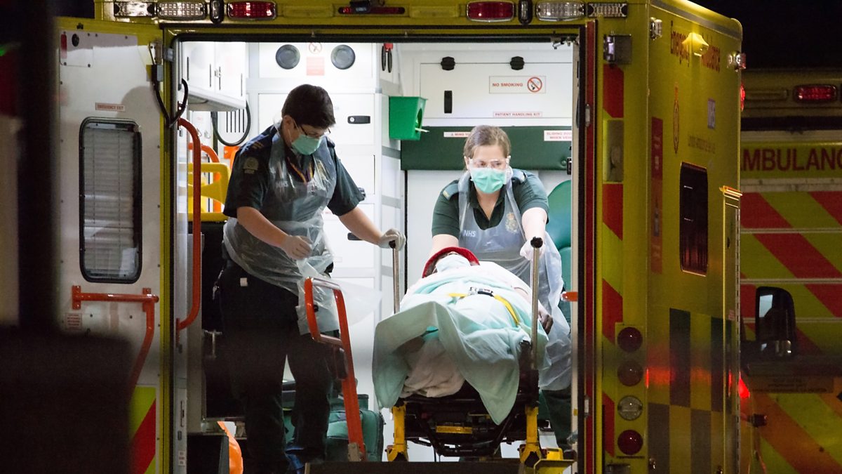 (Ambulance workers transport patients to St Thomas' Hospital in Westminster, London, UK. Photo credit: Ollie Millington/Getty Images)