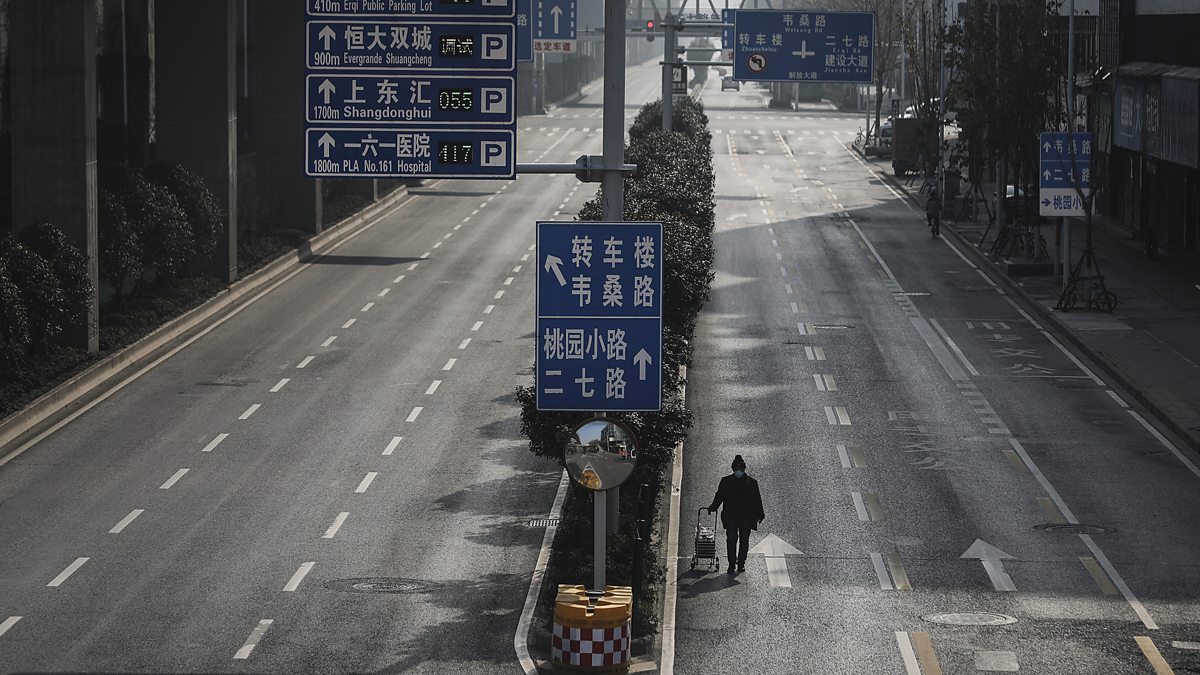 (A man drags a handcart across an emptied road on February 5, 2020 during lockdown in Wuhan, Hubei province, China. Getty Images)