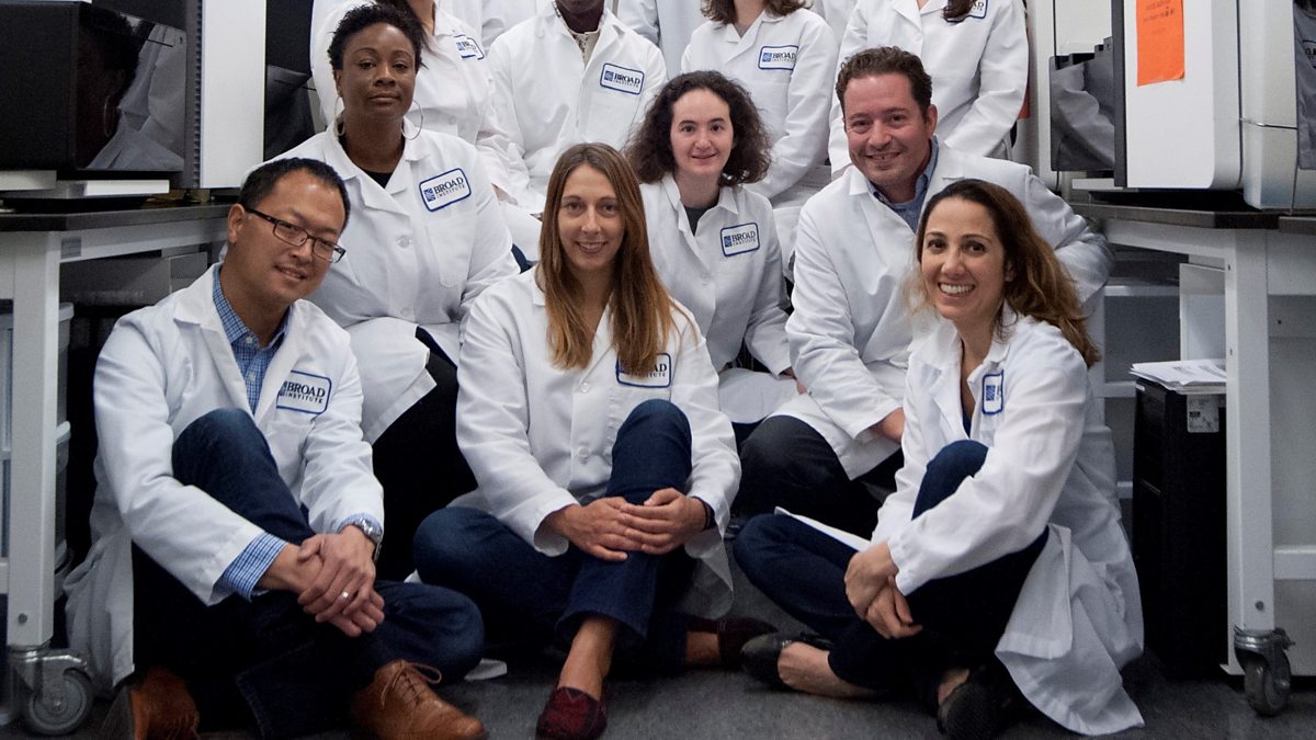 Photo: Pardis Sabeti (front row, right) with some of the team who sequenced the virus in the lab.