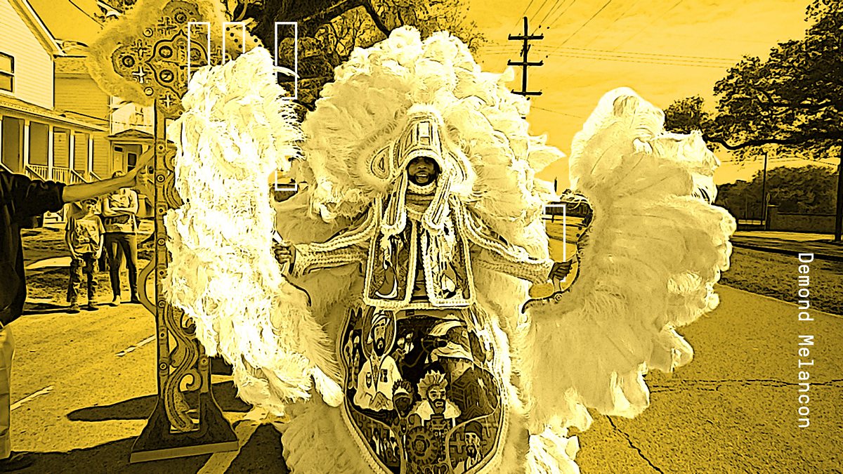 Image: Big Chief Demond Melancon of the Young Seminole Hunters on Mardi Gras day in New Orleans (Credit: David Favret)