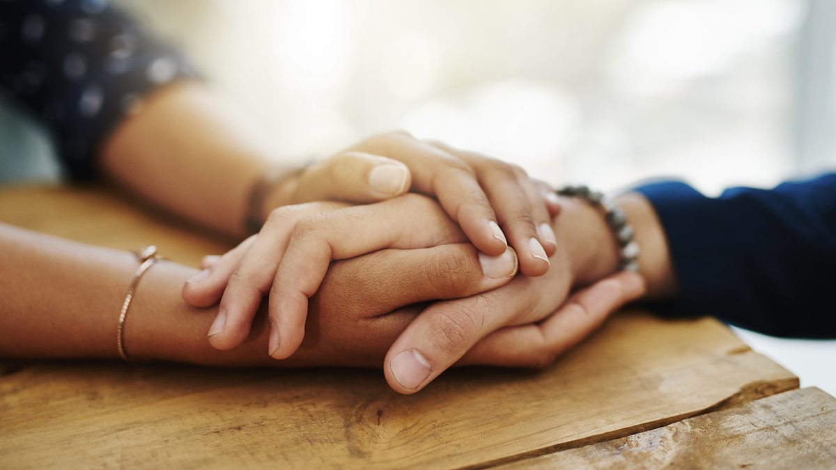 (Image: Hand being held in a gesture of comfort. Credit: PeopleImages via Getty)