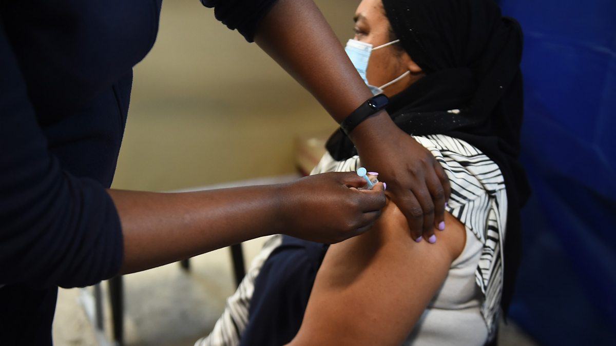(Photo: Vaccination centre in South Africa administering Covid-19 vaccine after news of Omicron variant. Credit: Xabiso Mkhabela/Anadolu Agency/Getty Images)
