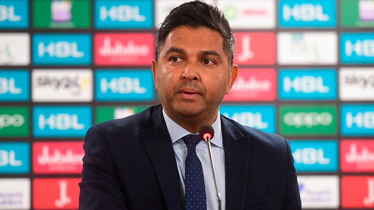 Photo: Pakistan Cricket Board CEO Wasim Khan addresses the media. (Credit: AFP via Getty Images)
