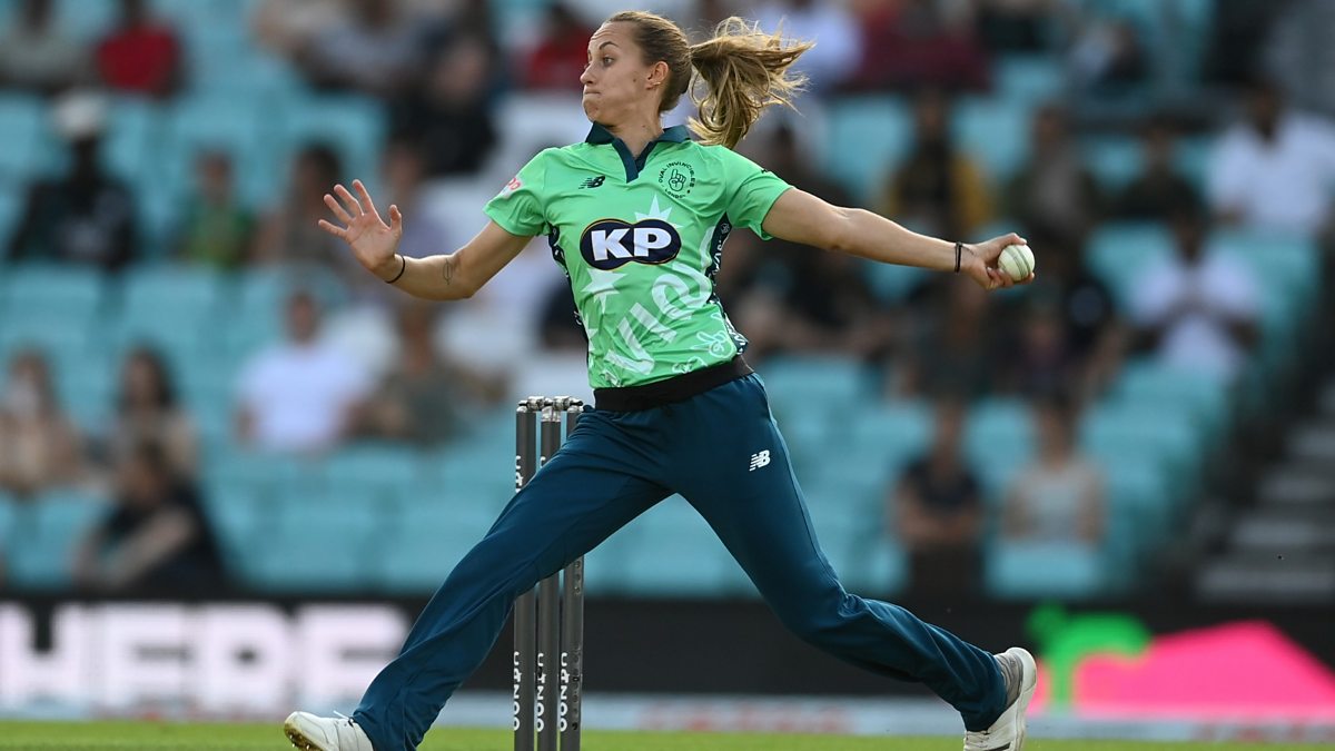 Photo: Tash Farrant of Oval Invincibles bowls during the The Hundred match between Oval Invincibles and Manchester Originals. (Credit:Getty Images)