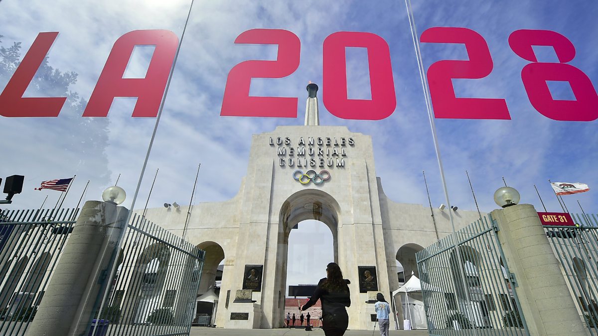 Photo: The torch is lit at the Los Angeles Coliseum as the city was officially named as host of the 2028 Summer Olympics.